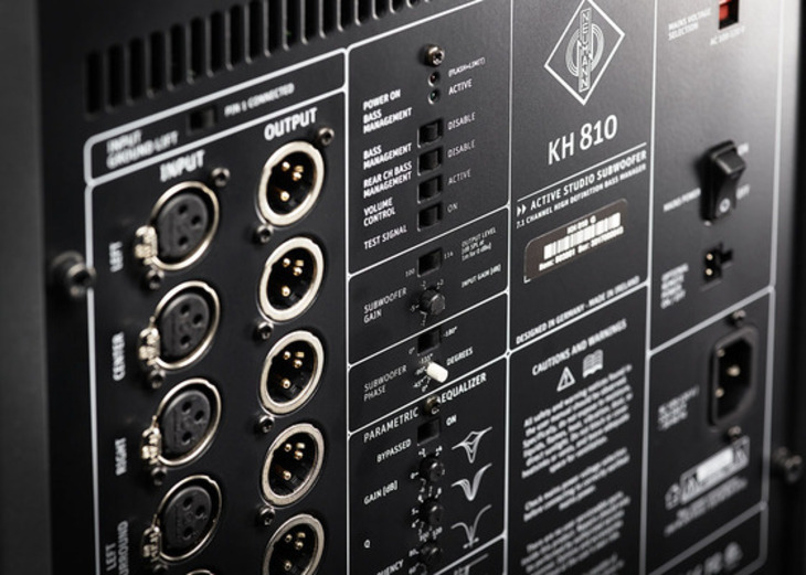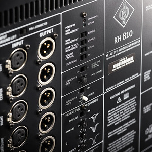 Eight channels of analog ensures flexible interconnectivity for modern studios. Four-mode LFE-channel processing guarantees compatibility across all formats and industries. Forth-order crossovers and flexible acoustical controls allow for seamless system integration. Built-in volume control and a hardware remote control allows for centralized system control independent of the source, and the electronics can be remote located to reduce cabling. From Mono to 3D, there are uses for the KH 810 in many different system configurations.