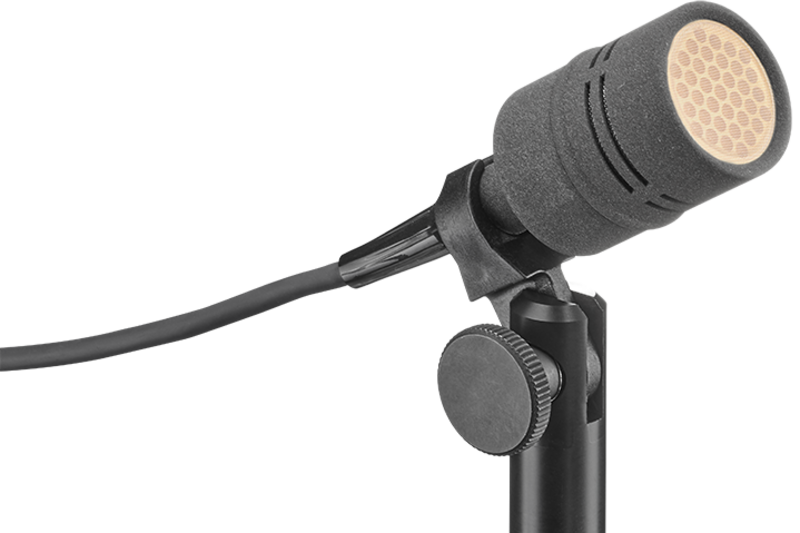 One of the most varied applications is as a speaker’s microphone on a table. Usually the microphone should be placed so that it is inconspicuous or even invisible, especially in television, while delivering optimum signal quality. Moreover, body noise and wind noise should be suppressed effectively.
