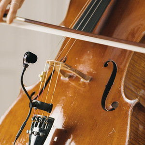 Clip to mount the gooseneck of the Miniature Clip Mic system on the strings of a cello